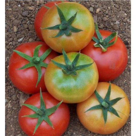 Variety name: BS-702 Plant habit: Determinate Fruit weight: 80-90 gm Maturity: 60-65 days Fruit size: Flat round Shoulder color: Green Tolerance: Heat -